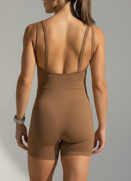 Macacão aero curto com decote costas e alça dupla mocha mousse